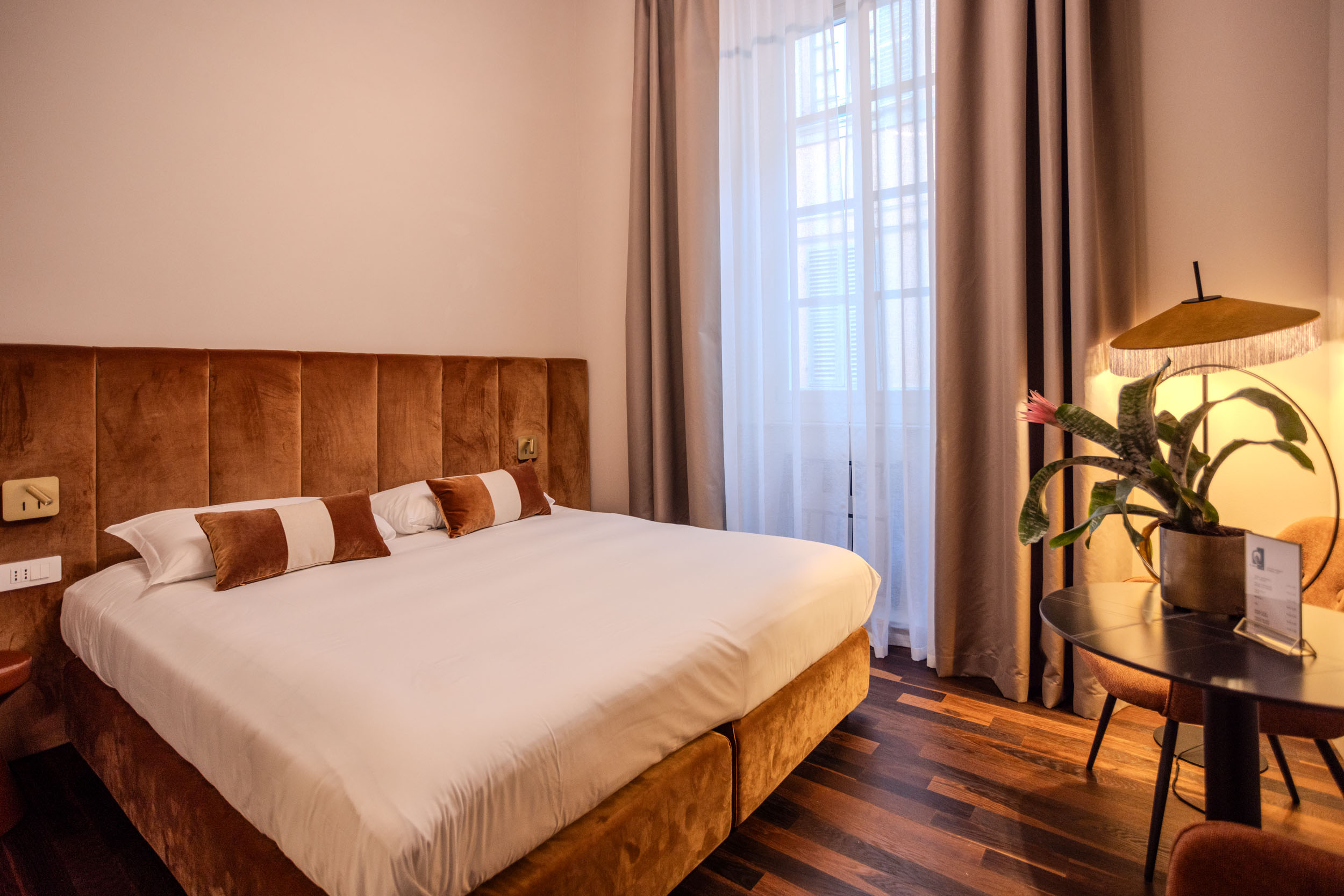 Tutte le camere sono dotate di: • Cassaforte • Macchina Caffè Nespresso • Kattle per Tisane e Infusi • Mini Bar • Linea Cortesia e Ciabattine • Asse Ferro da Stiro • Phon • Aria Condizionata e Riscaldamento Autonomo • Wi-Fi gratuito in tutte le camere e all’esterno.