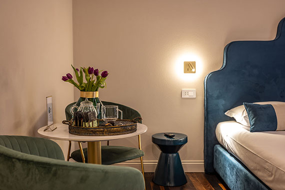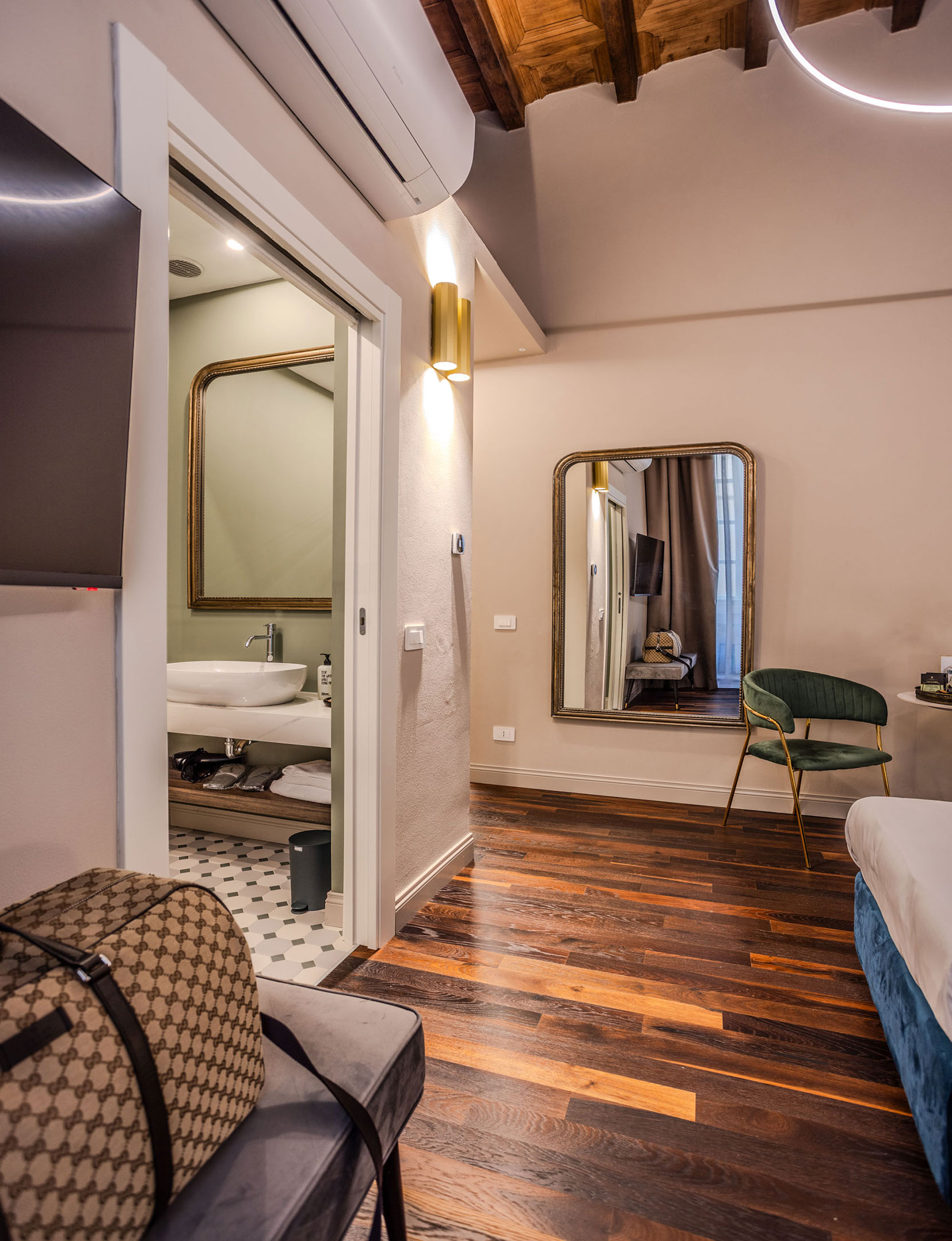 All rooms are equipped with: • Safe • Nespresso coffee machine • Tea and infusion set • Mini Bar • Complimentary toiletries and slippers • Ironing board • Hairdryer • Independent air conditioning and heating • Free Wi-Fi in all rooms and outside.